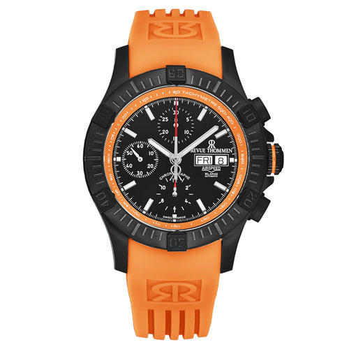Revue Thommen Men's 'Air speed' Black Dial Orange Rubber Strap Automatic Watch 16071.6639